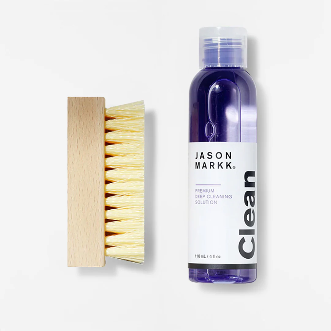 The Jason Markk Essential Kit includes a 4 oz Premium Deep Cleaning Solution and Standard Cleaning Brush. The perfect pairing for your all-around, general cleaning needs.
